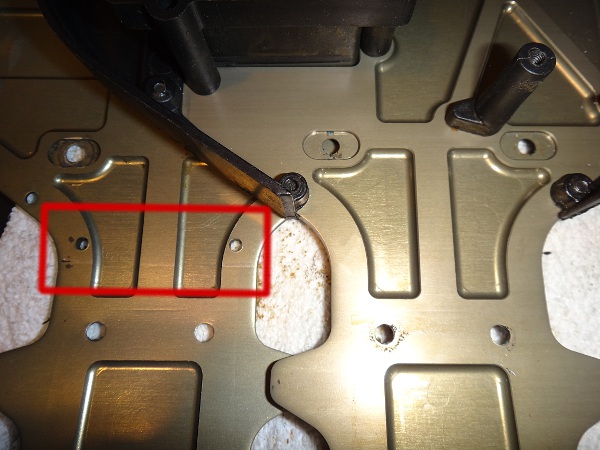 今回 購入したシャーシには赤枠の中の穴が