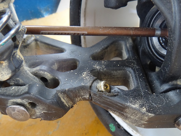 割れたサスアームをビスて固定して再利用